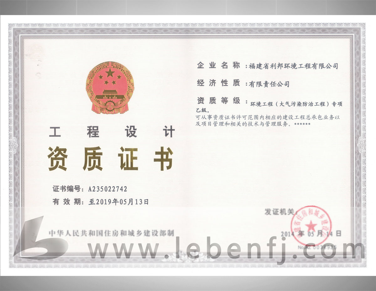 環(huán)境工程設計專項資質(zhì)(乙級)