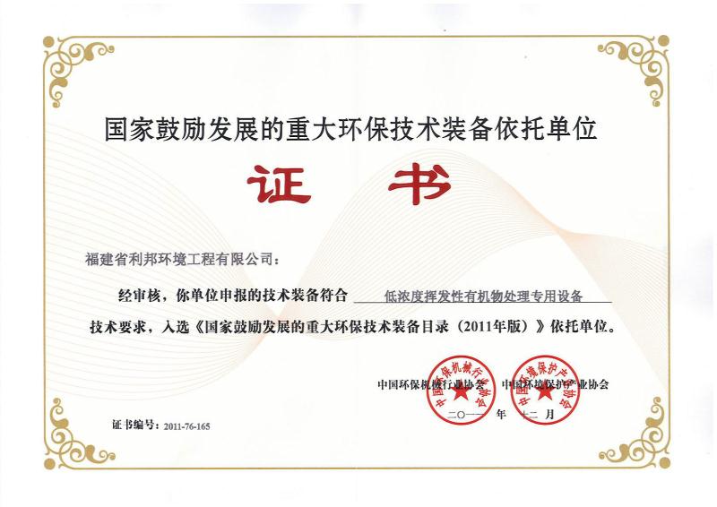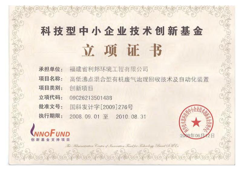 福建省科技型企業(yè)、福建省創(chuàng)新性企業(yè)、福建省首批科技小巨人、福建省“專精特新”專業(yè)化企業(yè),擁有企業(yè)研發(fā)中心、福建省有機廢氣凈化設備工程技術研發(fā)中心;公司產(chǎn)品獲得科技部、環(huán)保部、商務部、國家質(zhì)量監(jiān)督總局頒發(fā)的“國家重點新產(chǎn)品”證書,“中低濃度揮發(fā)性有機物回收凈化裝備”被列入《國家鼓勵發(fā)展的重大環(huán)保技術裝備目錄(2017年版)》;公司核心發(fā)明專利分別獲得了中國專利獎優(yōu)秀獎、福建省專利獎二等獎等專利獎項,其中兩個核心技術分別獲得福建省技術發(fā)明獎二等獎、福建省科學技術進步獎二等獎;公司